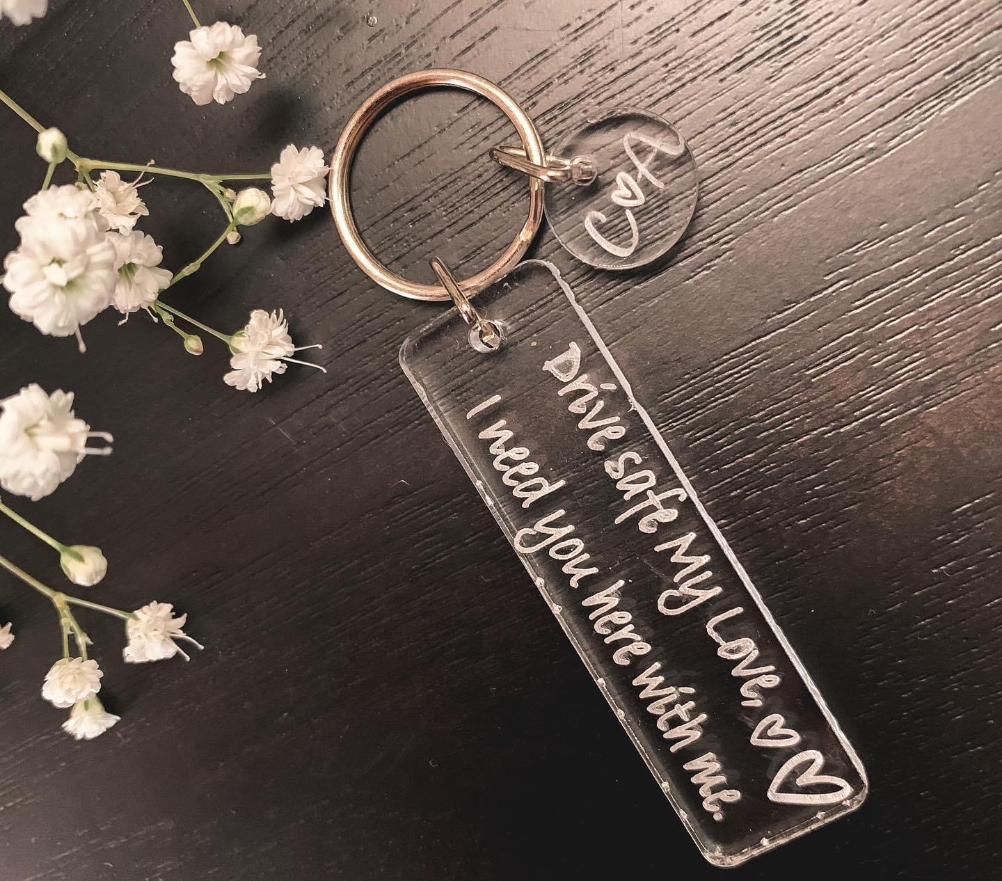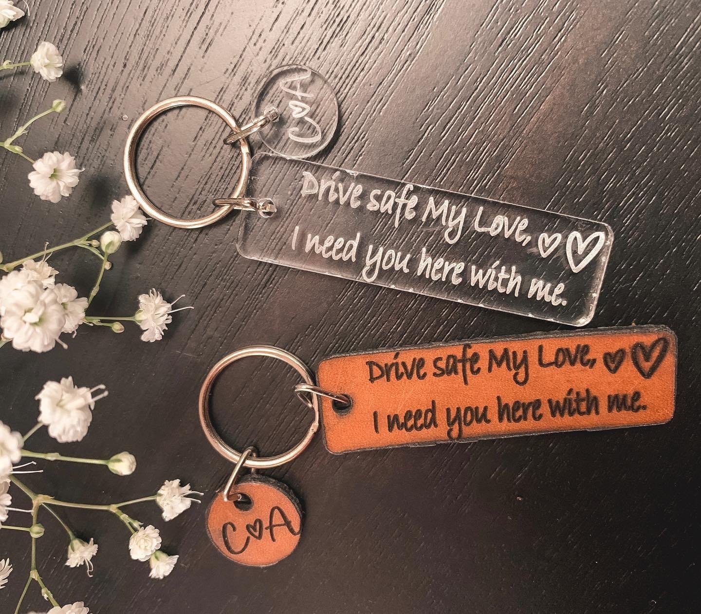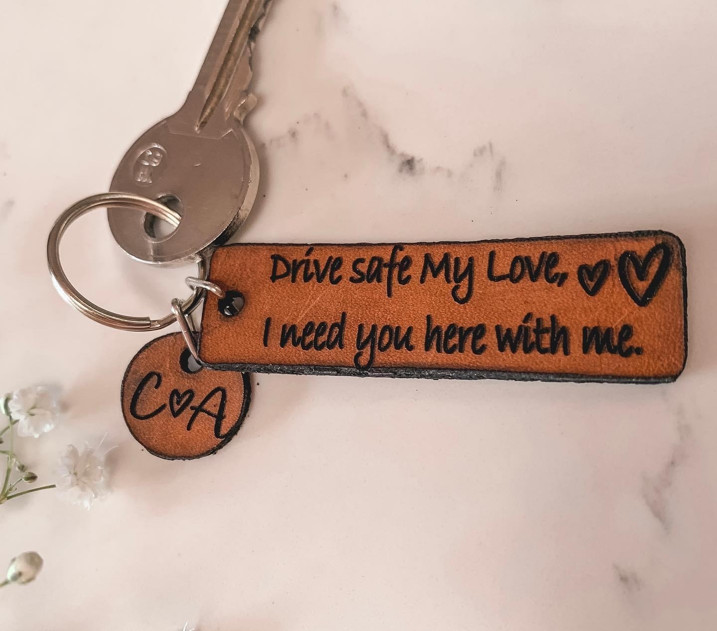 Remind your loved one of your love for them and how important they are to you by spoiling them with a drive safe leather or Perspex keyring. Customise it with two initials. Mix and match the Perspex and genuine leather to match your personal style.Â