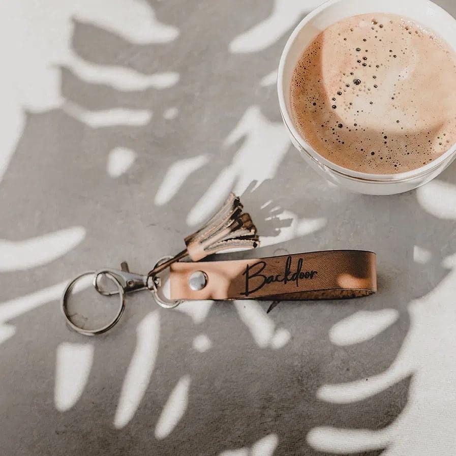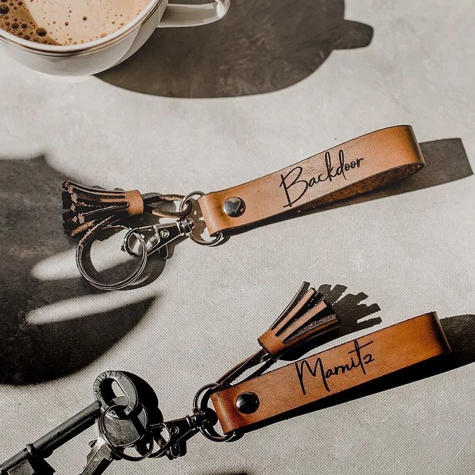 The perfect addition to a set of house keys. Match with that special someone. Personalised Genuine leather loop keyring with tassel. Personalise the loop keyring with a name or short sentence. Choose the colour leather that you and your loved ones desire.