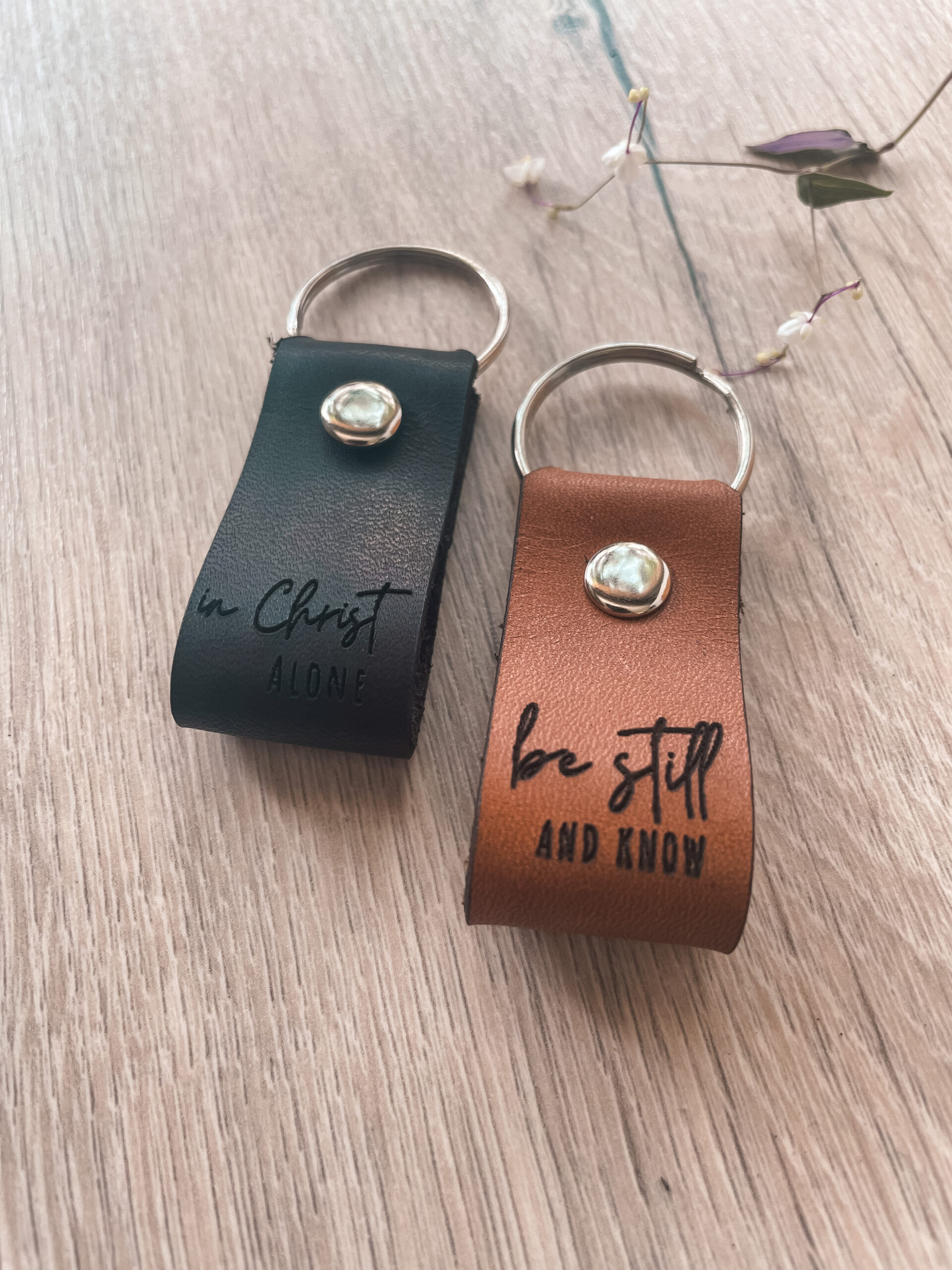 *Our Wide Loop Keyring is made locally with genuine veg look leather sourced from local suppliers, it is available in Tan, Chocolate Brown and Black. The leather loop is added to the 20mm split ring with a metallic rivet.